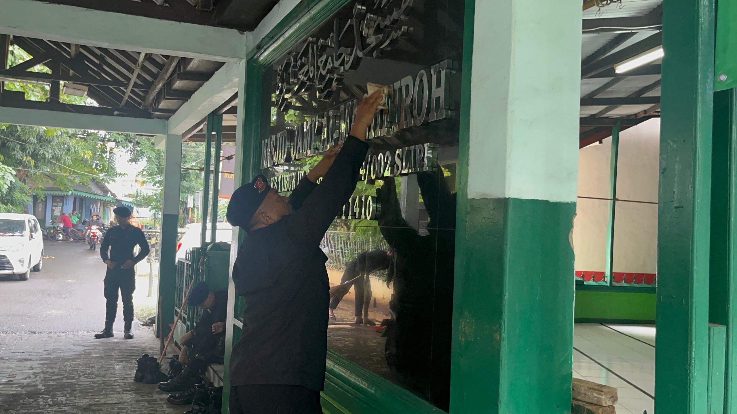Personel kemudian melakukan pembersihan di sejumlah titik, mulai dari area halaman masjid, ruang salat jamaah dengan vakum karpet, hingga membersihkan ventilasi, kaca, dan jendela di dalam bangunan. Upaya tersebut dilakukan untuk menjaga kebersihan sekaligus menciptakan suasana tempat ibadah yang lebih nyaman bagi masyarakat.