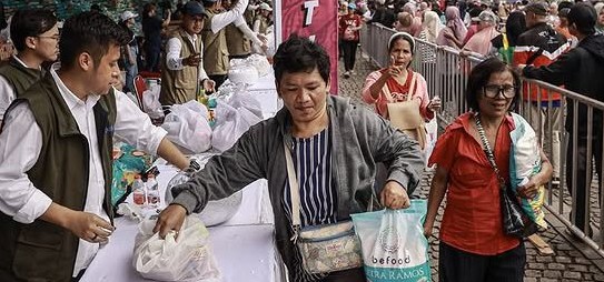 “Tadi, laporan dari Pak Kapolda, lebih dari 100 ribu orang, dari jam 4 yang hadir ke sini, dan makin lama makin ramai mungkin 200 ribu, porsi makanannya saja 300 ribu, dan tadi laporannya sudah hampir habis, berarti ya, lebih dari segitu,” ujarnya.