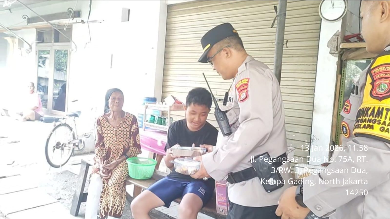GD.ID, Jakarta-Kepolisian Sektor (Polsek) Kelapa Gading, Polres Metro Jakarta Utara, melaksanakan kegiatan Polri Peduli melalui pembagian nasi kotak kepada warga terdampak banjir di RW 03 Rawa Indah, Kelurahan Pegangsaan Dua, Kecamatan Kelapa Gading, Jakarta Utara, Selasa (13/1/2026).